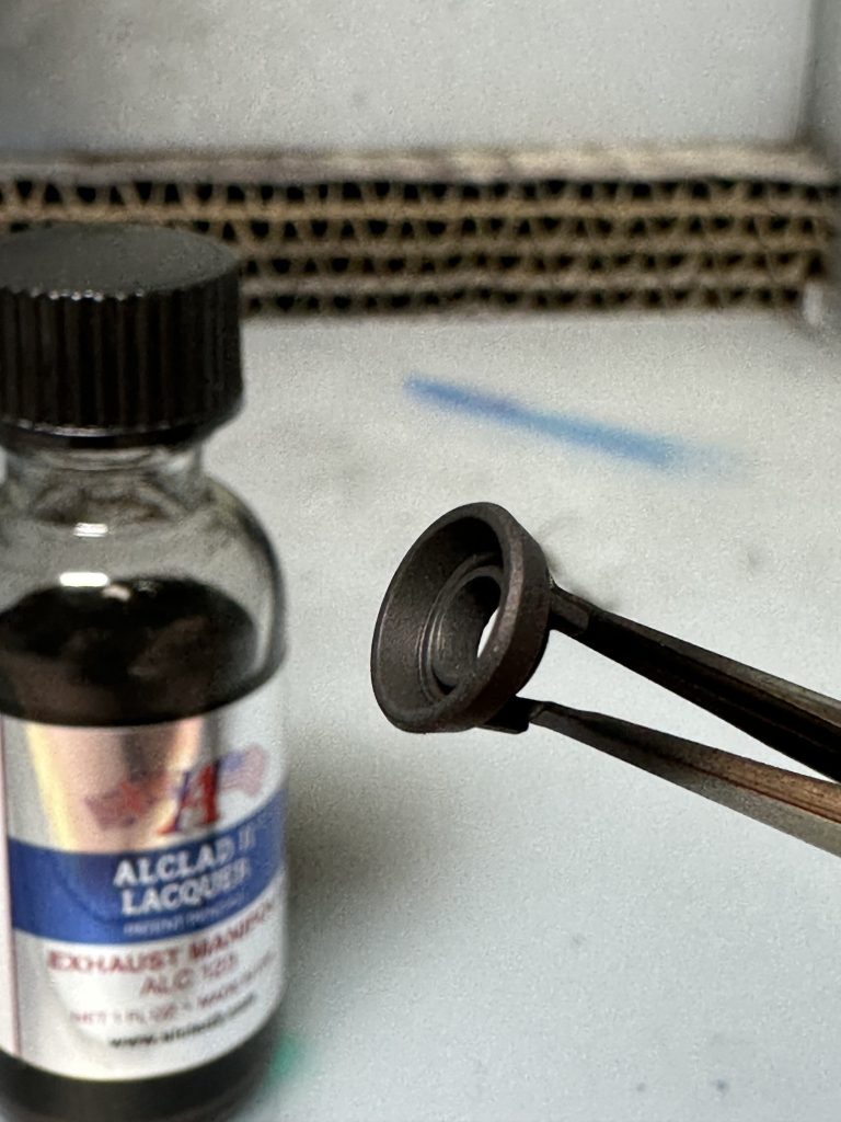 最初はメタリックパーツの塗装です。メイン写真は新しく仕入れたアルクラッドⅡカラーのジェットエキゾーストという色でスラスターを塗装したものになります!写真では分かりにくいですが、鉛の中にカッパーの粒子が光っているような色をしていて、実在の宇宙船のスラスターに似た色をしていてとても気に入りました😊