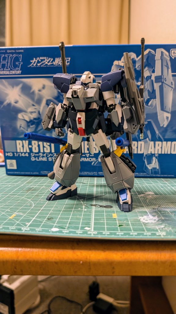 ジーライン続きです!武器の本体への接続が完了しました✌️かなりムチャな重装備ですが、自立できてるのはさすが最新キットの素体と言ったところでしょうか😎脚キャノンはかなり簡単な接続にしちゃいましたが、グリグリ動くのでヨシ!ミサイルランチャーはバックパックに被せる方式にしました。追加装甲にさらに装甲を重ねるというワケわからん状態になってます(笑)ビームライフルは元のキットのがカッコよかったので、そのまま採用して腰にマウント出来るようにしました。左肩のシールドにはラーガンダムから頂いた連邦十字マークを付けました🌙まだ左脚アーマーの工作が途中ですが、とりあえず今の状態がフル装備になります!
