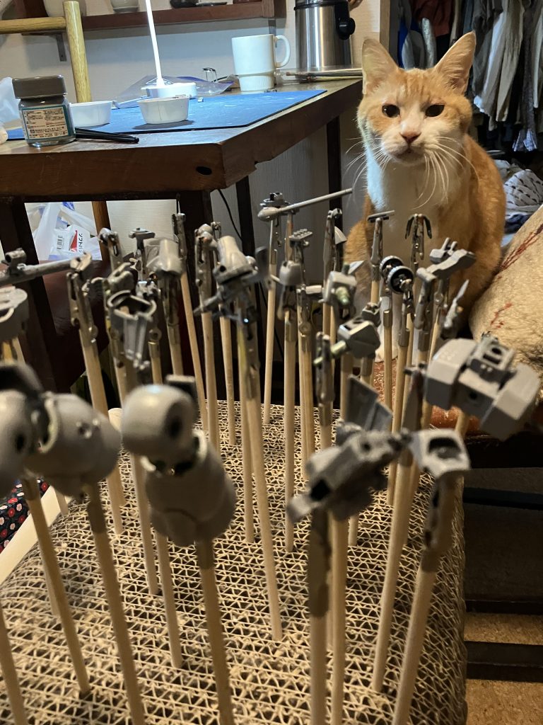 ニャンコが居るのでラッカー塗料、エアブラシを使わずvicカラーと水性アクリジョンの筆塗り、HGシリーズをコツコツと制作していきます。