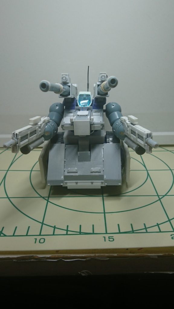 - ベースはHGUCガンタンクを利用、コアブロックを排除。腰部ターレットのベースとなる部分を作製。(360°回転可)