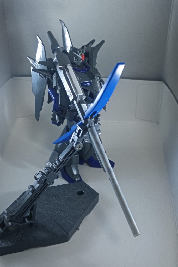 SDナイトユニコーンをシルバーで塗りブルーメタリックで汚しま…