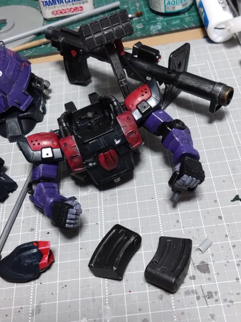 紫は本来だともう少しピンクっぽい色合いなのですが少し暗めのドムっぽい色にしてます。