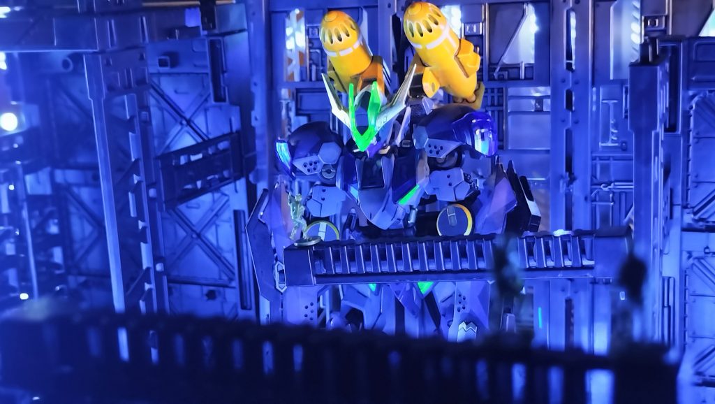 同じ手法で、サンボルフルアーマーも格納庫撮影しました。使った小道具はほぼ一緒です。ブロック遊びみたいでオモロイですよ。