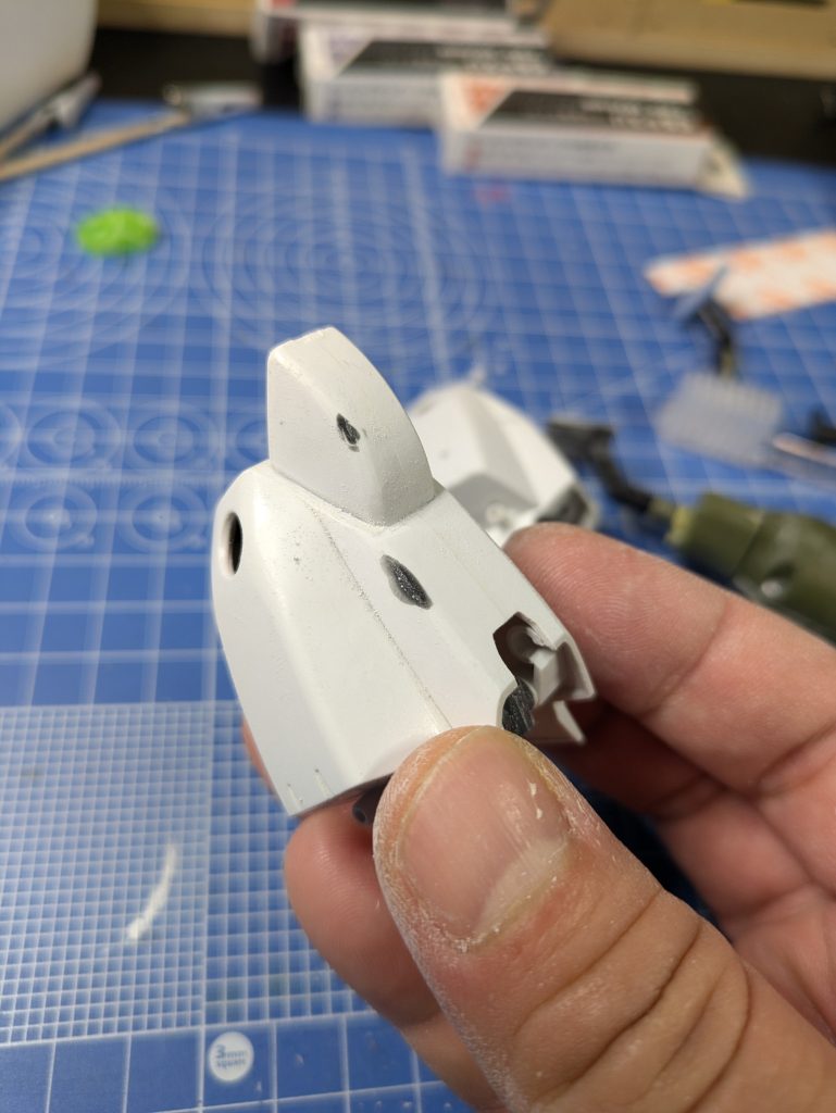 ジャンク品ですので傷があったりするので、瞬間パテで埋めて合わせ目消しと軽く表面処理をしてやって洗浄して乾燥中です。