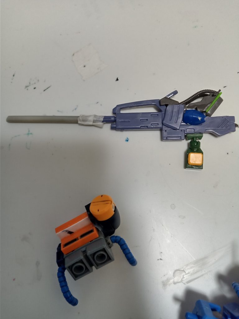 グフに取り付けるビーム砲をでっち上げ中です。オラ設定ではロングレンジのビーム砲なので砲身伸ばして高出力っぽいジャンクパーツを適当にくっつけて遊んでいます(笑)