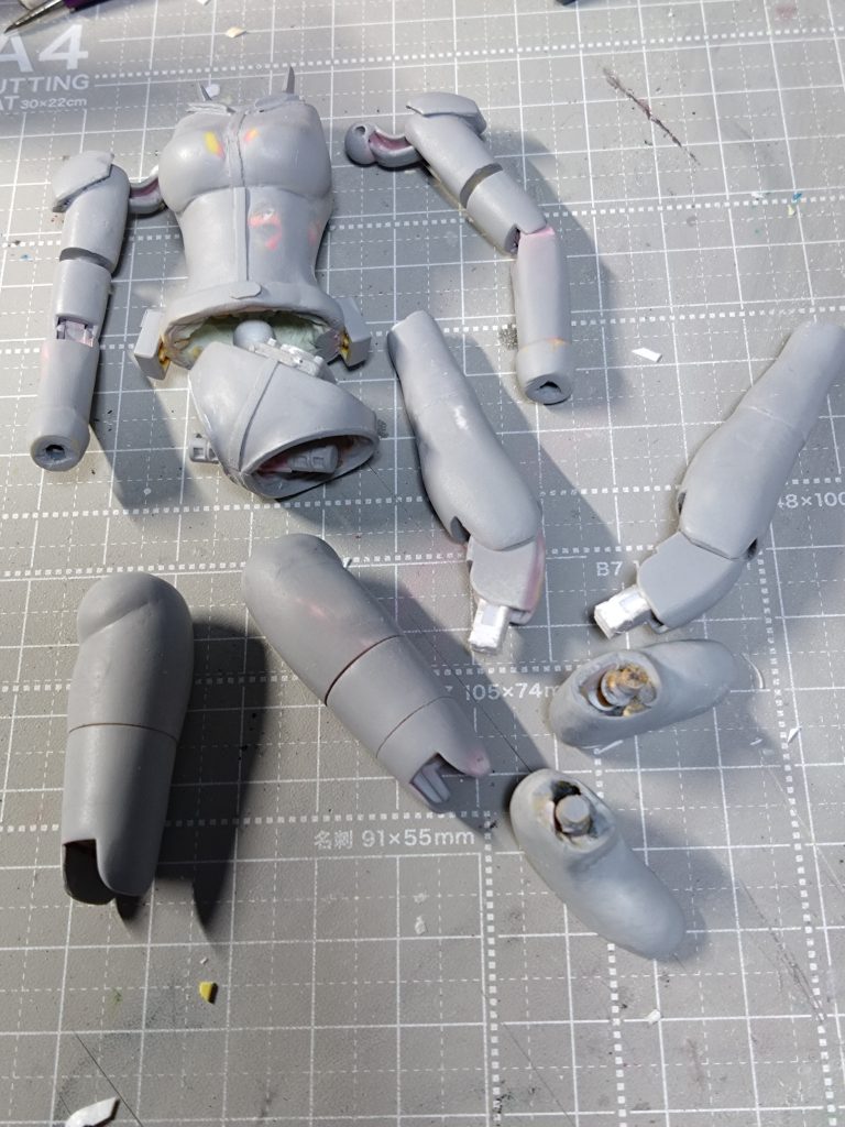 造形に時間かかった分ボディはプラ板、パテで造形〜削ってサフ、削ってサフ〜削りでやっとここまできました。😅