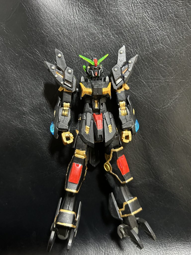機動武闘伝Gガンダムからネロスガンダム×ガンダムヘヴンズソードのオマージュとしてオリジナル機製作してます本体はまずネロスガンダムオマージュ部分は剣闘士の甲冑のトサカを追したり肩にリベットを貼り足にはラインストーンシールを装飾として貼りました後はヘヴンズソードオマージュ武分はは足をGエルスにしてバックパックをライジングフリーダムガンダムにして差し替えなしで鳥風の可変をできるようにアレンジしてます