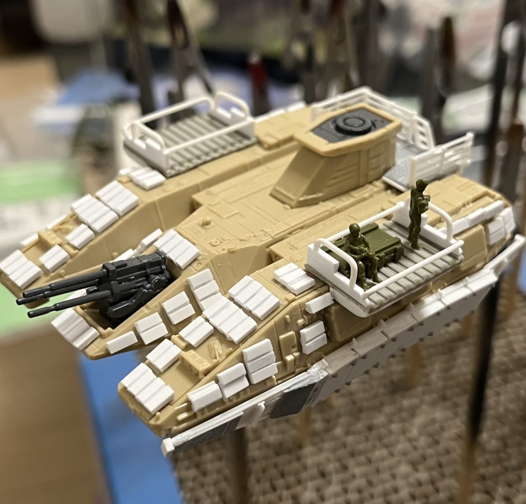RaMuShizu 2024.12/03更新 《ジオラマ》復讐のレクイエム「敗走」 128 27 いいねしたモデラー(27) 6 作品を共有 カーゴデッキを設置し荷物と「山田科学の軍人」をとりあえず載せてみました。ハシゴの設定をどうするのか?考えた挙句、車体後部にもデッキを作ってそこにハシゴを組み込んでみました。マゼラトップを載せると、かなり圧迫感がありそうですが固定式のハシゴの位置としては一番自然かな?と思います。格子も今時のスリットアーマーっぽく、また荷物カゴっぽく見えるのでデザイン的にも良いかなと…側面の装甲も細かいパーツを付けてそれらしく仕上がりました。これからマゼラトップを組んで全体のバランスを考えながら調整して行きます。 制作中 コメント コメントをして応援しよう コメントにはログインが必要です 猩々(しょうじょう) 1年前 山田科学は軍人まで作ってるんですね! セリアをパトロールしてみます。 でもHGサイズなんですよね。悩ましい🤔 ていうかカーゴデッキやハシゴの考証、説得力がスゴいです✨✨✨ RaMuShizu 1年前 ありがとうございます(╹◡╹)車高がある巨大戦車に「戦車あるある」のタンクデサントや荷物ぎっしりを違和感なくやろうとすると、それなりの理屈が必要になっちゃいますね。61式ならまだそんなに深く考える必要も無いんでしょうけど… meg-ocero 1年前 カーゴデッキ良いですね😆 家のバルコニーもこれにして欲しいです(笑) RaMuShizu 1年前 ありがとうございます(╹◡╹)テキーラガンナーみたく土嚢積んで銃座にするのも面白そうです。 Ojipop 1年前 山田科学の軍人。 どこへ行っても、売り切れですー。と言うのはさて置き、完成が楽しみですー😁 RaMuShizu 1年前 ありがとございます(╹◡╹)セリアこまめにチェックするとマメに補充されてますよ!タンクデサントさせる為のお座り兵と担架で運ばれる傷病兵が欲しかったのですがドンピシャな商品でした。 RaMuShizu ガンダムは一年戦争以外はあまり知らないオッサンです。1年戦争以外のMSは殆ど知らないので話しについて行けない事もしばしば😅。1年戦争🪖をミリタリー的にあしらった物が見るのも作るのも好きです。ミキシングとやらはやった事もなくパテやプラ板を使った古風な改造しかできません。模活の年季は入ってますのでそれなりに見応えのある作品を心掛けて作って行きたいと思います。 6 「BATTLE OF CALIFORNIA BASE」その後 前作のキャルフォルニア基地で連邦守備隊が壊滅した後の状況です… 6 EXマゼラン&サラミス ソロモン攻略に向けティアンム艦隊と合流すべくルナツーから出撃… 9 「3部作最終回」 なんとか間に合いましたね。 2 「やべえ、遅刻だ!」 かなり慌ててますね。 RaMuShizuさんのページ この作品をお薦め作品に設定する Please login to update your profile! Please login to update your profile! Please login to update your profile! Please login to update your profile!