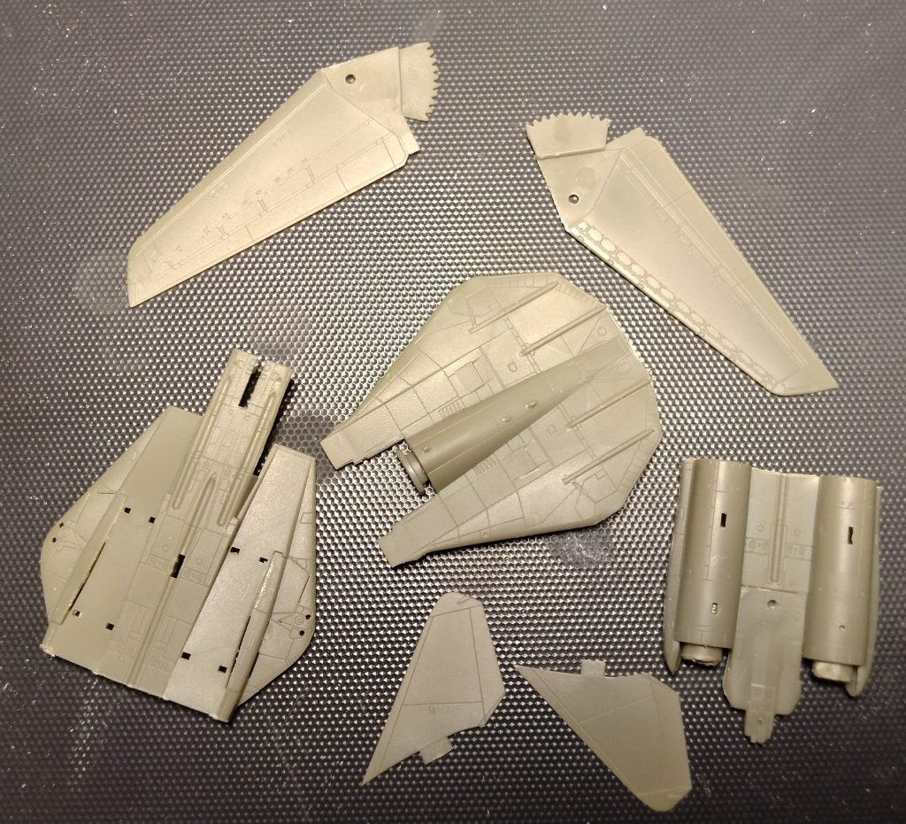 真ん中を少し削って幅を小さくした機首側を、可変翼が後まで行く様に、少し上げて再接着。
