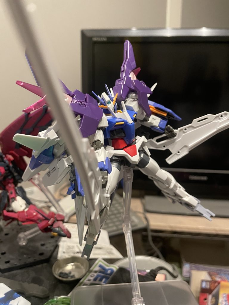 ダブルオースカイとダブルオーダイバーアーク、ダブルオーライザー、ザンライザーカスタムキット、AGE-ⅡマグナムSVを使ってます。