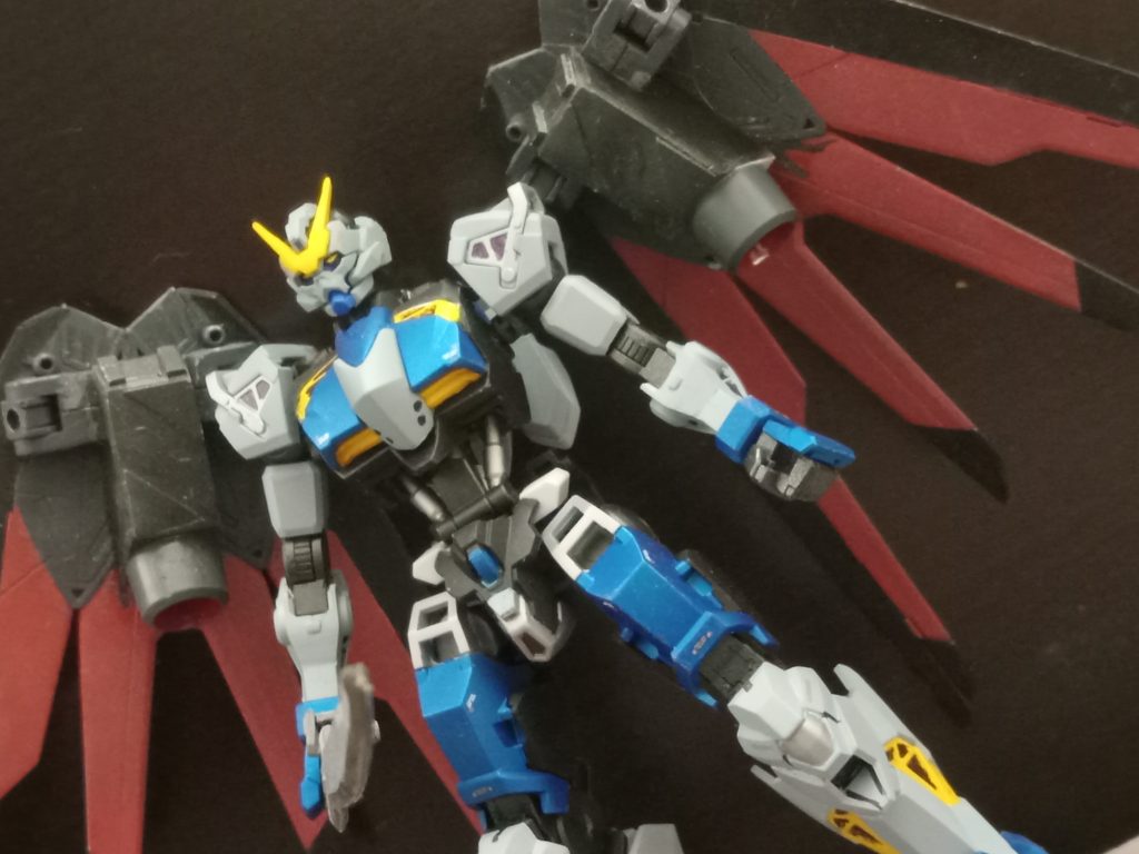 HGCEフリーダムガンダムウイングスを使って作った翼。ハイエンドモデルと組み合わせる計画もある。(1枚目)