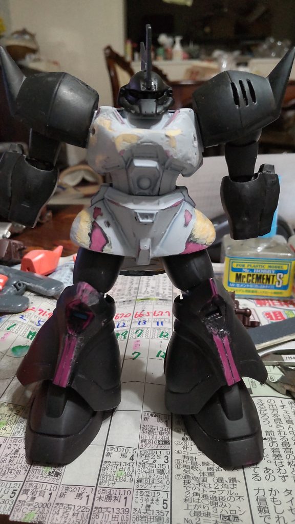 自分なりのプロポーションを求めてパテを盛って削って、サフを吹いてを繰り返しました。