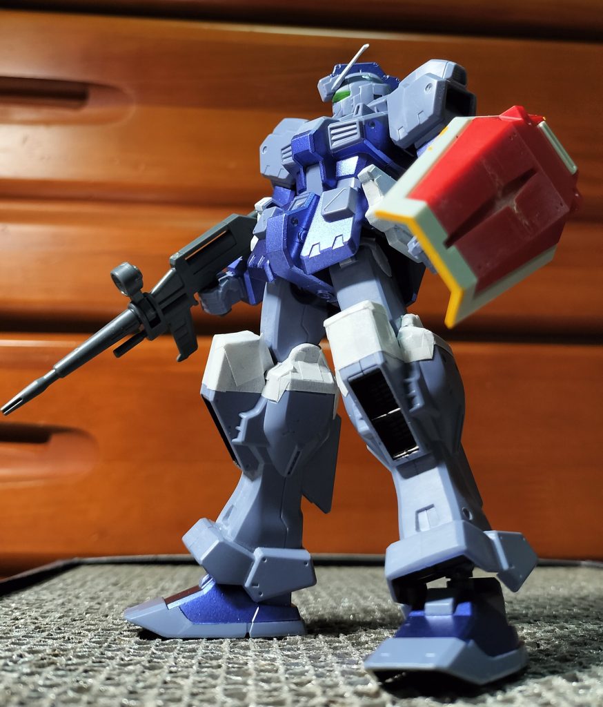 ペラペラすぎたビームライフルの代わりにEG RX78のライフルとシールドを持たせてみたら、ピッタリシンデレラフィットなので、ちょいいじりして持たせることに。
