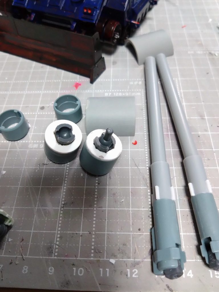 キャノンは切断してプラパイプに置き換え。太さアップと長さは5mmくらい延長。
