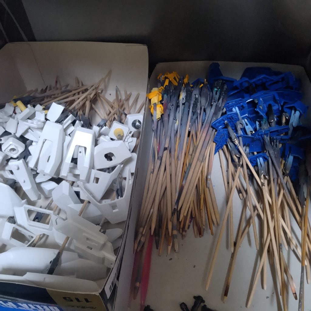 手持ちの持ち手全て使い塗装準備しました!年が明けても塗装スタイルは変えるつもりが無くて!(笑)やり出したら一気に行きたいので!自分にスイッチ入るまで、まだハンドピースに手が伸びてません!(笑)流石にPGなので長丁場になるので!即では無くてこの数日の間にスタートすると思います!去年ラストに体調崩してからか、今年はちょっと慎重になってます!(笑)それと!まだ色々しつこく思案したりもしてたり!(笑)どうしてもこの古さをぬぐえる処置が思いつかなくて!でもだんだん見てる内にこれはこれでカッコよくね?って思い始めてたりも!(笑)特にウェイブライダー変形時はこのキットでしか味わえない迫力と魅力がありますね!そのウェイブライダーの魅力の事があるので下手にイジれないと思ってますので!このキットは個人的にですがモビルスーツよりもウェイブライダー目的で手にする様な気がしてきてます!(笑)まぁ私の物では無いのですが!自分がカッコいいと思わないと!始まらないので!