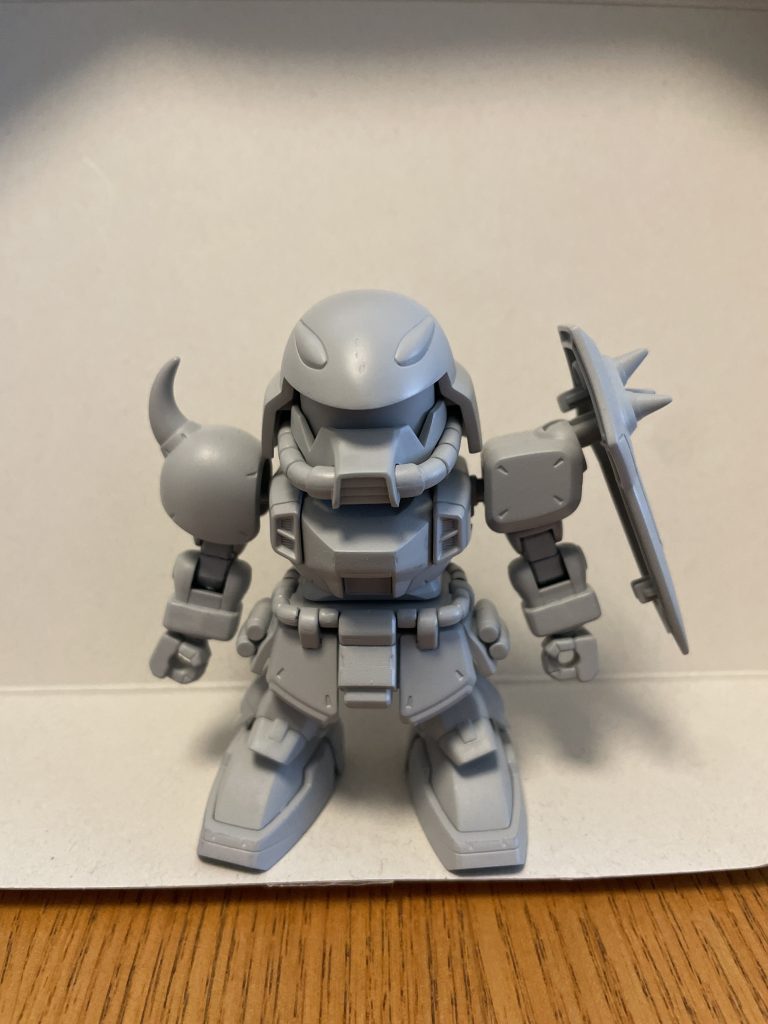 話は変わりますが、こう、全体をサフ吹きした状態を見ると、展示会とかの試作段階のそれに見えて、もうこれでいいんじゃないかな、って思っちゃいます(笑)でも、さすがにそんなことはしません。せめて色分けはしたいと思います。でも、あまり出費はしたくない。この感じ…。完成するかどうかは、乞うご期待。