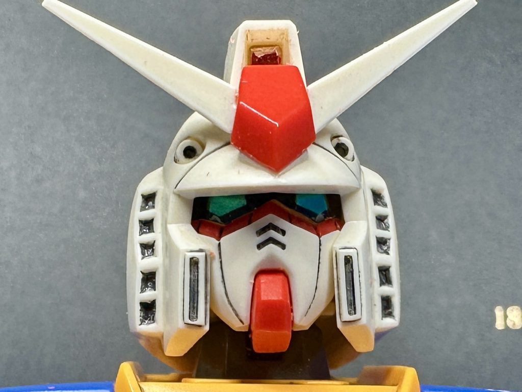 首の延長工作も考えたのですがとりあえず手軽にできるものとして顎の赤いパーツ、オプチカルシーカーというものらしいですが、を削ってみました。