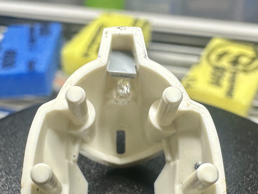 オーソドックスにフェイスパーツの固定ピンのダボをC字に切り込み下からカチッとはめられるようにしました。