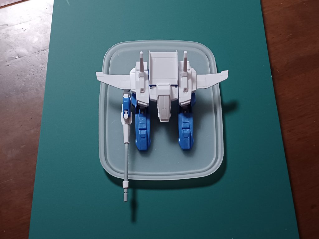 Gディフェンサーの翼の延長 → ただ1mmのプラ板で延長すればいいやと思ってたんですが翼に段差が。結局、0.3mmのプラ板を貼ってヤスリで少しずつ削って高さを合わせました。0.1とか0.2mmのプラ板が欲しかったです(持ってなかった。