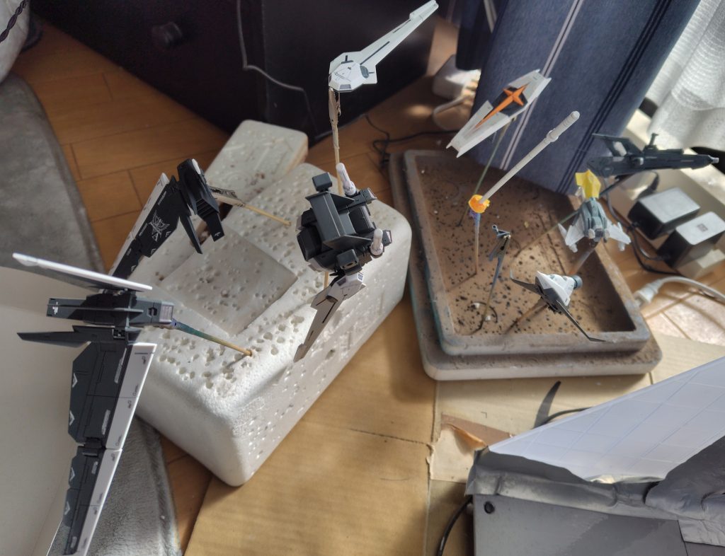 いっしー 2025.01/26更新 16 10 いいねしたモデラー(10) 0 作品を共有 こんにちわ。 2ヶ月ぶりくらいにトップコートしてます。 まずバズーカからやろうと準備してたら、またまたデカール剥がれて貼り直し😣この子は後回し。 あとはいつもは先に全部に猫の手つけてからやりますが、今回は2回に分けようと本体以外から先につや消ししました。 前はお得用のつや消しで、しっかり振らなかったのかイマイチでしたが、今回はお得用の在庫なくて、小さいのを2つ買ってきました。よく振りながらやってますが、うまくいくことを願って😂 制作中 コメント コメントをして応援しよう コメントにはログインが必要です いっしー 40代の社会人です。 30代中頃から20年ぶり位にガンプラを製作しだし〇〇ガンダム中心に製作しています。 基本は部分塗装とスミ入れ、トップコートのみのパチ組モデラーです。 復活して数年経ちますが技術は上がらず凹んだりしますが、作ってる最中は楽しみながらやってます。 遅番の日の出勤前や、土曜日を中心に少しずつ製作してます。 製作意欲に波がありますが、制作報告書きテンションあげて頑張ります。 気長にお付き合いいただけるとありがたいです😣 製作傾向は多い順にウイングガンダム、ダブルオー、宇宙世紀(ユニコーン、逆シャア多め)、水星の魔女、エックス、鉄血、その他の順です。 作ったものは飾りたく、カラーボックス、キューブボックス&上段にクリアーひな壇、念願のコレクションケースと徐々に飾るところが増えましたが、手狭になってます😅 皆さまを参考に製作したものをたくさん投稿できるよう頑張りますので、よろしくお願いします。 6 リ・ガズィ逆シャア 本体一周 久々の完成作品の投稿になりますが、MGリ・ガズィ逆シャアバー… 5 ガンダムXディバイダー デカール貼り、つや消し 前回投稿してから時間空きましたが、ガンダムXディバイダーにデ… 5 ガンダムXディバイダー素組、ちょい塗り ガンダムXディバイダーを素組、少し塗って作りました。 青の色… 5 アルトロンガンダム つや消し アルトロンガンダム完成しました😂 角の安全ダボカットと、少し… いっしーさんのページ この作品をお薦め作品に設定する Please login to update your profile! Please login to update your profile! Please login to update your profile! Please login to update your profile!