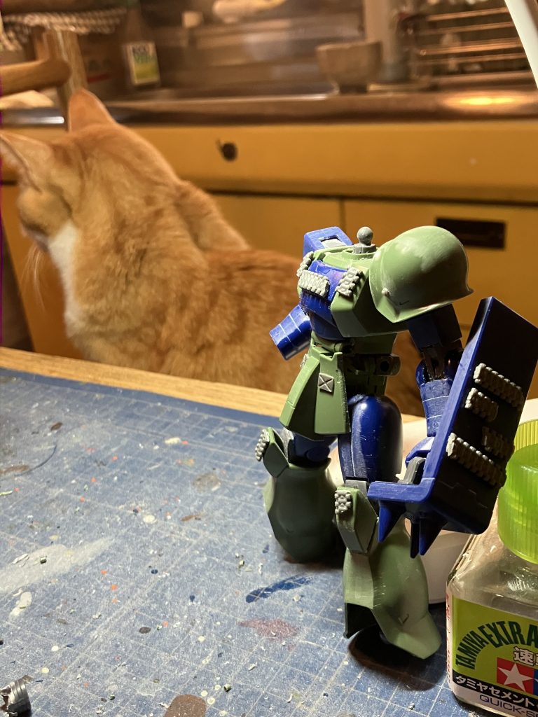 ニャンコが居るのでラッカー塗料、エアブラシを使わずvicカラーと水性アクリジョンの筆塗り、HGシリーズをコツコツと制作していきます。