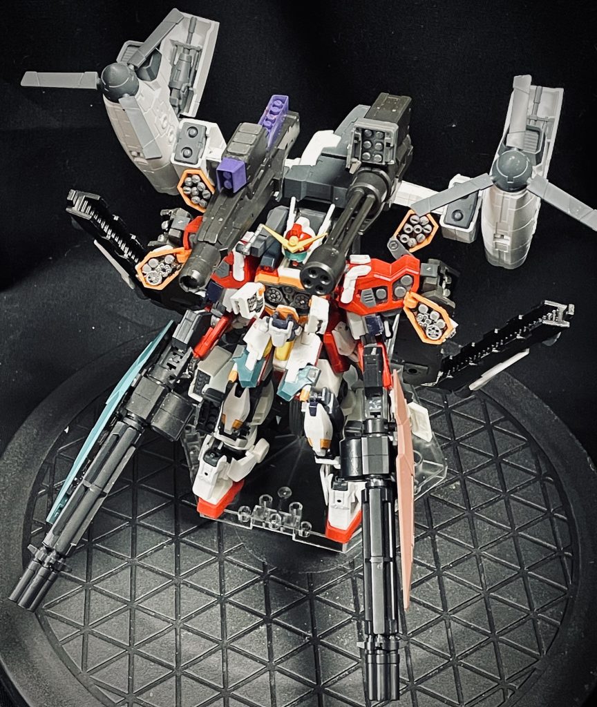 30MMのティルトローターをミサイルの位置を変更しフォルムを変更させて、バックパックにマウント。パーツ差し替えが必要ですが支援機としても。