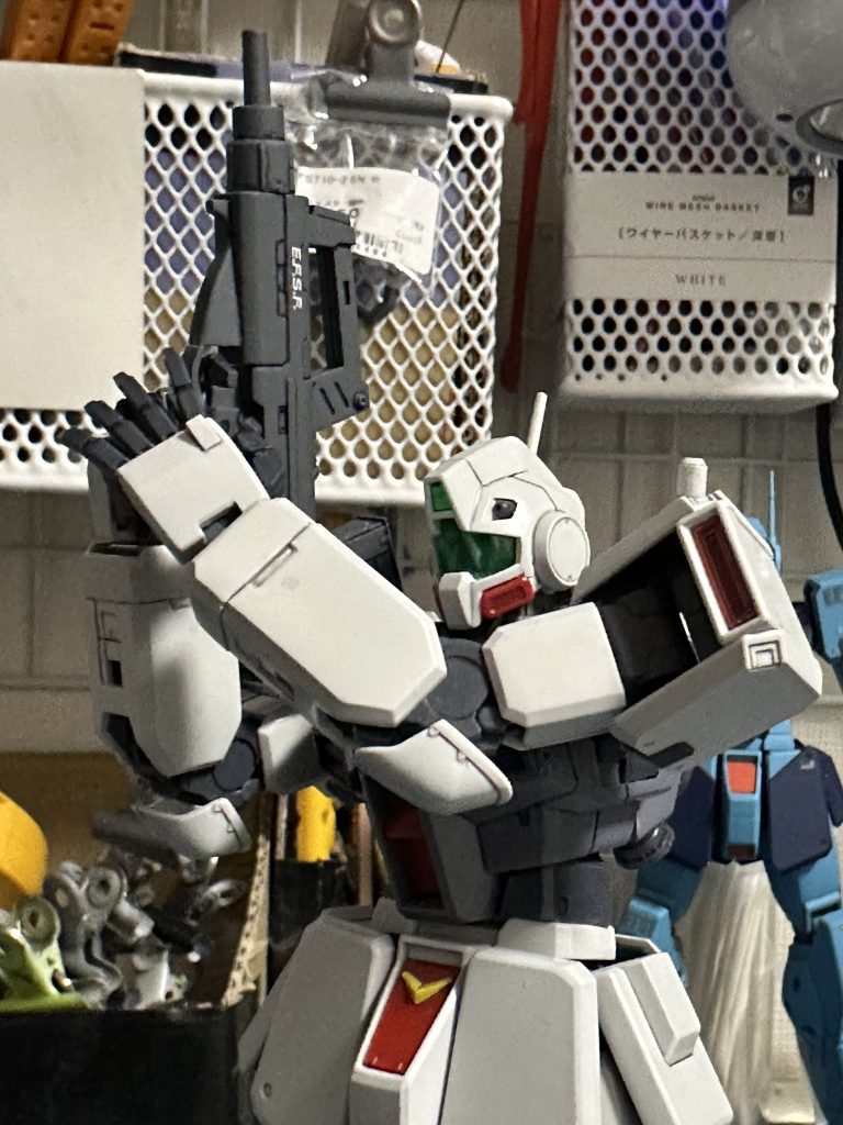 とりあえず、キットの通りのマーキングにGMスナイパーⅡなどと共通になるようなマークを市販の水転写ガンダムデカールで追加(肩部や脚部のEFSF等)してます。