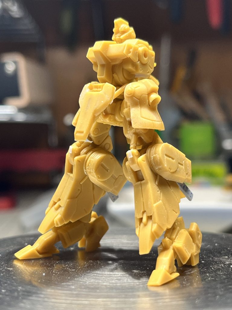 現在の悩み。ヤツのチャームポイントの一つが外装に入っている白いラインだと思ってるんですけど、フロントスカートのものとスネ横のもの、どう再現したものか…塗装だけじゃツマランよなぁ…