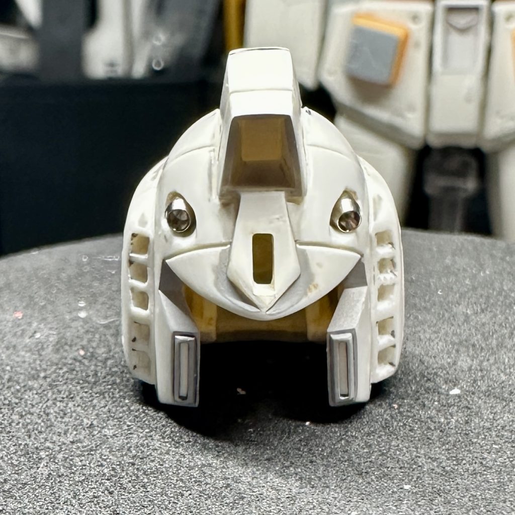 以前の工作で頭部バルカンにハイキューパーツのガンマズルの取り付け工作を行いましたが元々の砲口を開口しパーツを取り付けていただけだったのでイマイチ不格好でサイズもあっていませんでした。