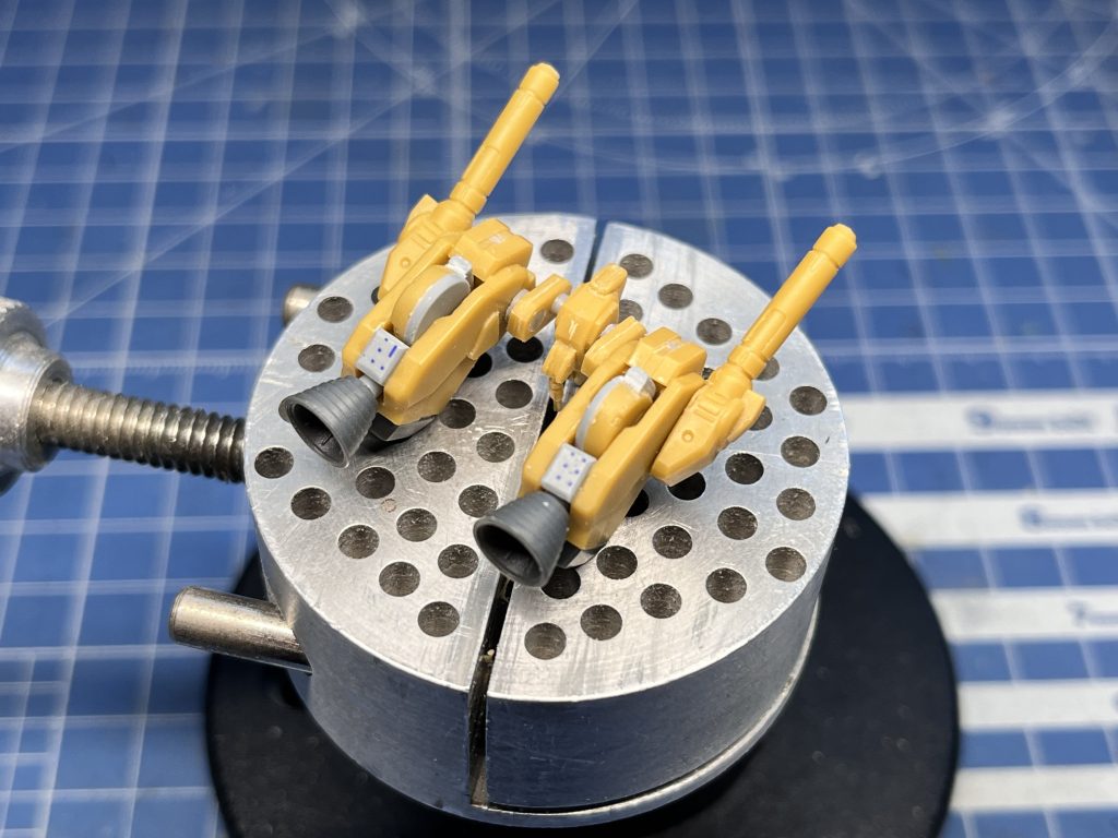- シルヴァ・バレトのものを中央部に。その両サイドにZZのものの上下を切り詰めたものを接続。waveのだったかな、角型スラスターとバーニアをペタリ。
