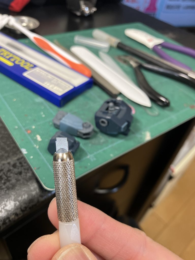 ASUR 2025.03/31更新 ダンモ練習中😉 72 47 いいねしたモデラー(47) 6 作品を共有 HGジェスタ、最近はRGや1/100だったので出番はありませんでしたが、ダンモ登板です🥳 が!思ったより久しぶりでこんなに難しかったっけ😅 0.2mm/0.4mm刃なんですが、う〜ん、1/144だと0.4mmは大きすぎる気もするし0.2mmはかえって難しい🤨 なかなかの高額ツールなので簡単に買い足しできないのがネック😑 まぁ慣れですかね😘 制作中 HG HGUC ジェスタ 機動戦士ガンダムUC ダンモ コメント コメントをして応援しよう コメントにはログインが必要です ヨッチャKID 9か月前 カクカクってなってるとこで合わせ目をなぞる感じですかね?むずそ😗 ASUR 9か月前 慣れるともっとスムーズなんでしょうけども、なかなかチカラ加減や角度を手探り中🤔🤔 ですが、ちょいこなしてきましたよ、うぅ〜ん0.3mmも気になる🥳 Hiro0079 9か月前 これ愛用しています😊 同じものか不明ですがワンサイズのみでした。今からはいろんなサイズがあるのですね😊 すごい便利ですよね✨ ASUR 9か月前 以前のはワンサイズなんですね、私は割と最近買いましたが、正直、刃の両サイドで長さが使い分け出来るのは買う直前に知りました🥳 お値段がするので複数持ちのハードルは高めですが、便利さはHiro0079さんのおっしゃるですよね👍 おやプラ 9か月前 制作お疲れ様でございます! 自分は、0.3/0.6を使用しています。便利なアイテムではありますが、綺麗な段落ちを作るには、仰る通り、慣れが必要と同感でございます😊 ジェスタの完成、楽しみでございます😊 ASUR 9か月前 さすが、おやプラさんもダンモお持ちでしたか🤩 しかも、0.3mm慧眼恐れ入ります🥴 上手く使えば、簡単フィニッシュでも便利そうなんですが、慣れはいりそうですよね🥳 ASUR 基本は成形色、部分塗装にスミ入れの簡単フィニッシュに💪 メタルパーツとデカール、メタリックマーカーの部分塗装でそれっぽくする、簡単フィニッシュちょいプラス😁 合わせ目消しは放置です🥳 目立つゲート跡はゲートリムーバーで👍 投稿しているガンプラで全塗装は過去の作品です。 現在は、生活環境&時間的にもヤスリがけ工作や、エアブラシなど全塗装は厳しく、 簡単フィニッシュちょいプラスで😙 これなら数週間、長くても1か月で1作品、とりあえず作り続けることが一番楽しい時間🤤 みなさんにご覧いただき嬉しく思います😆 ROBOSTAアカウント:https://robosta.jp/author/ASUR/ ASURさんがお薦めする作品 MG ゼータガンダム ver.Ka 簡単フィニッシュちょいプ… HGガンダムファラクト 簡単フィニッシュちょいプラス HG ガンダムグシオン 簡単フィニッシュちょいプラス HGトロハチ 簡単フィニッシュちょいプラス 17 HGFC マンダラガンダム簡単フィニッシュちょいプラス HGマンダラ•ガンダム、成形色にスミ入れ&デカールか… 13 MG ガンダムF91 ver2.0 ハリソン•マディン専用機… マスターグレードガンダムF91 ver2.0 ハリソン•マデ… 13 HGUCハイザック•カスタム A.O.Z RE-BOOT版 … HGUCハイザック•カスタム A.O.Z RE-BOOT版 … 1 🏷️タグ「〜バトンをつなぐ〜」フォローで交通整理👮 🏃♀️バトンリレー🏃♂️のタグ、ていうか「タグ」でフォロ… ASURさんのページ この作品をお薦め作品に設定する Please login to update your profile! Please login to update your profile! Please login to update your profile! Please login to update your profile!