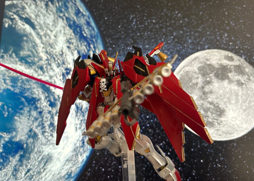 X-0がベラ・ロナ専用機になる想定だったとかメタルビルドのCM見てベラと言えばビギナギナ、後は実家に戻ってからの衣装が赤、金、黒のイメージがあってそこから妄想して塗りました