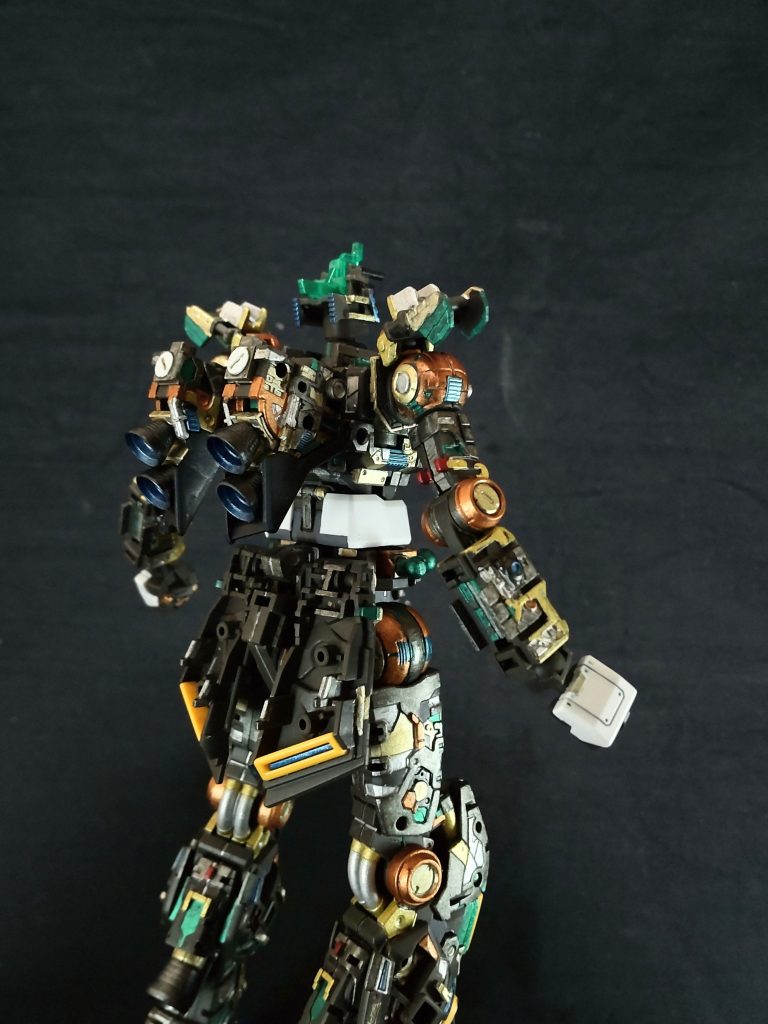 ディテールがみっちりなんで複数の色で塗り分けてみました。設定とは違いますがいつも通り可動軸ポイ箇所は、カッパーにしました😄。装甲パーツ切り出してますが、先は長そうです😓。パーツも多いし、それに小さい😅。