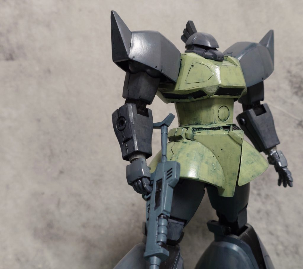 HGUCグフカスタムを、ザクカラーに筆塗りしてみました。配色…