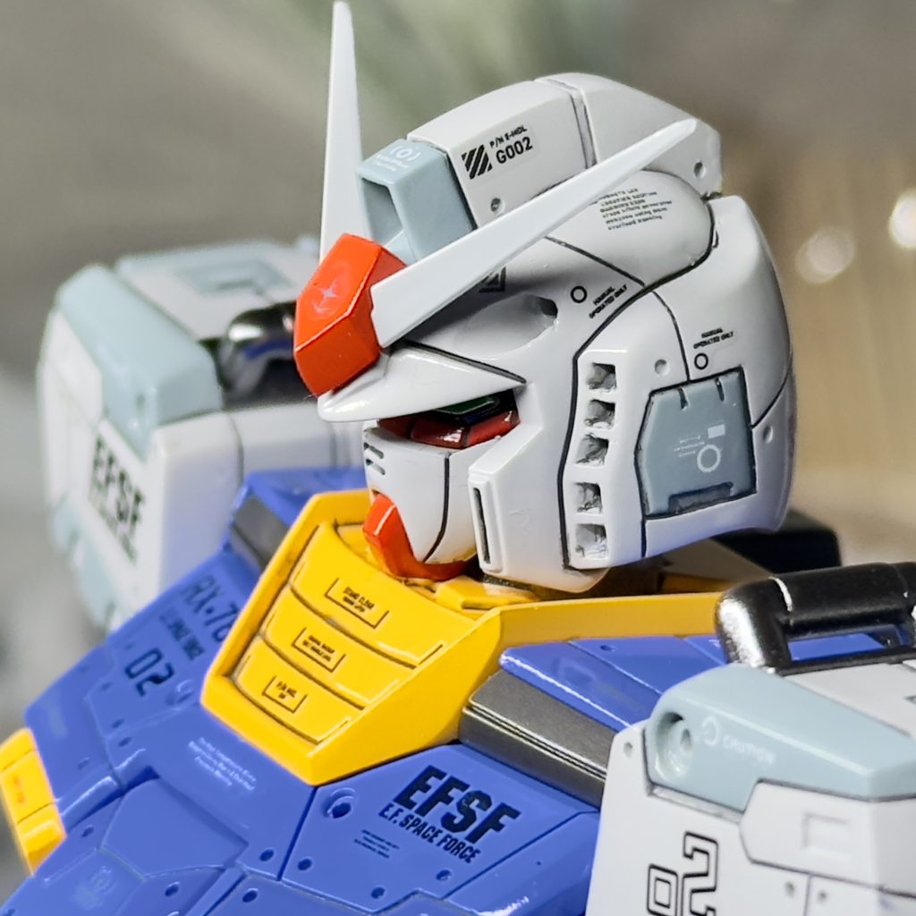 あとはRX-78は連邦の試作型MSということでまだ整備のマニュアルなんかも整っていないと思うので説明書きやらマニュアルやらが直接ボディに書いてある…という設定で文字デカールを多用しました。