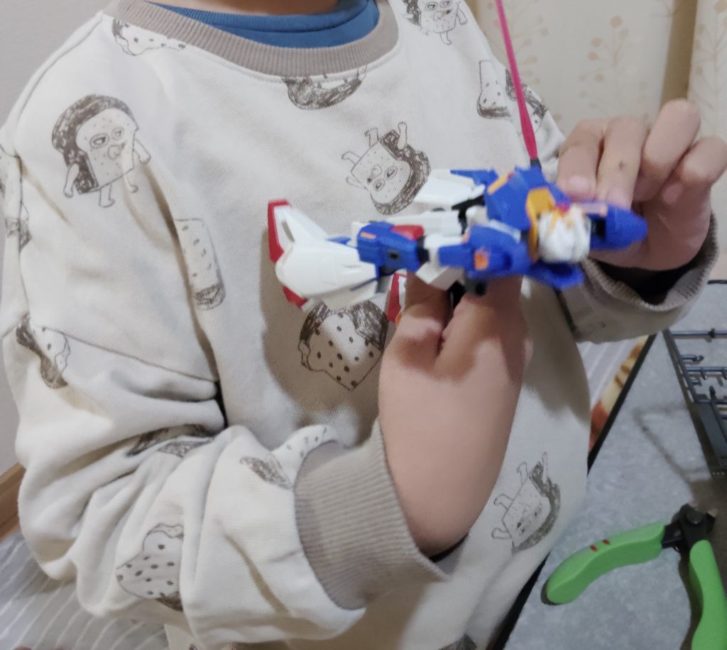 嫁が作り、子供が筆塗りしたEGνガンダム