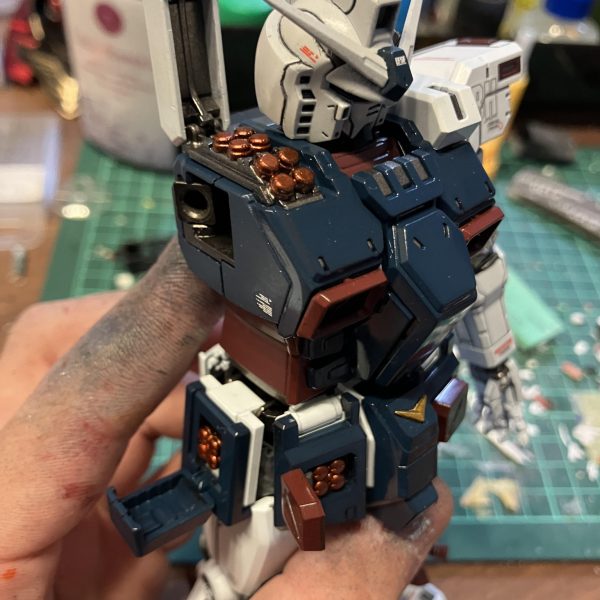 あれから下半身も塗装、デカール、トップコートを行いました。アーマーや武装類はまだあまり進んでいませんが、胴部、腰部のアーマーは塗装、デカールまで行きました。(デカールの画像なくてすみません)シールドなどのオレンジは基本色で行くつもりですが、ミサイルの弾頭部分だけはキャンディーオレンジで塗装していくつもりです。