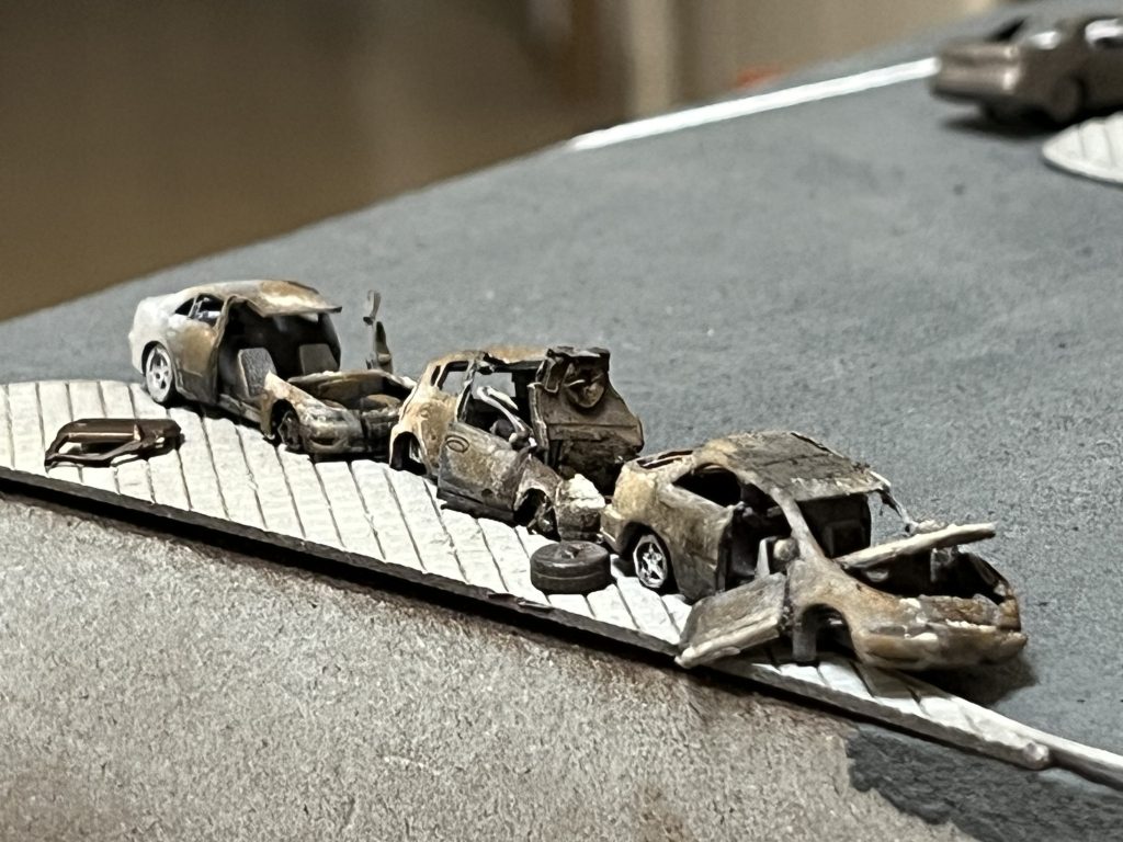 RaMuShizu 2025.04/10更新 《ジオラマ》復讐のレクイエム「敗走」 72 29 いいねしたモデラー(29) 4 作品を共有 いい感じの焼き加減で、これでご飯3杯はいけそうですね。タミヤウェザリングマスター《Bセット》サビ・スス・スノーを使用。アスファルトもいい感じです。スタイロフォームをペーパー掛けして表面を整え、マホガニーのサフでスタイロの素穴を埋めた後、タミヤの情景テクスチャーペイント《路面ダークグレイ》を塗布。 制作中 コメント コメントをして応援しよう コメントにはログインが必要です TOMSIM 9か月前 イイ壊れ方ですねw 実にそれっぽいです。やり過ぎないぐらいでさすがの塩梅。お見事です。 RaMuShizu 9か月前 面倒だなあ…と思いながらもタイヤが燃え残ってるのおかしいよなと思いタイヤをニッパーでカットしホイールを残しました。 猩々(しょうじょう) 9か月前 こんがり焼けましたね🤤 風合いがステキです。 路面も、テクスチャーペイントはこの手順でこの質感になるのですね。 勉強になります🙇 平滑感もお見事です👏👏👏 RaMuShizu 9か月前 ありがとうございます。あの重曹から作るアスファルトに比べたら100倍楽でした。機会があったら試してみて下さい。 RaMuShizu ガンダムは一年戦争以外はあまり知らないオッサンです。1年戦争以外のMSは殆ど知らないので話しについて行けない事もしばしば😅。1年戦争🪖をミリタリー的にあしらった物が見るのも作るのも好きです。ミキシングとやらはやった事もなくパテやプラ板を使った古風な改造しかできません。模活の年季は入ってますのでそれなりに見応えのある作品を心掛けて作って行きたいと思います。 6 「BATTLE OF CALIFORNIA BASE」その後 前作のキャルフォルニア基地で連邦守備隊が壊滅した後の状況です… 6 EXマゼラン&サラミス ソロモン攻略に向けティアンム艦隊と合流すべくルナツーから出撃… 9 「3部作最終回」 なんとか間に合いましたね。 2 「やべえ、遅刻だ!」 かなり慌ててますね。 RaMuShizuさんのページ この作品をお薦め作品に設定する Please login to update your profile! Please login to update your profile! Please login to update your profile! Please login to update your profile!