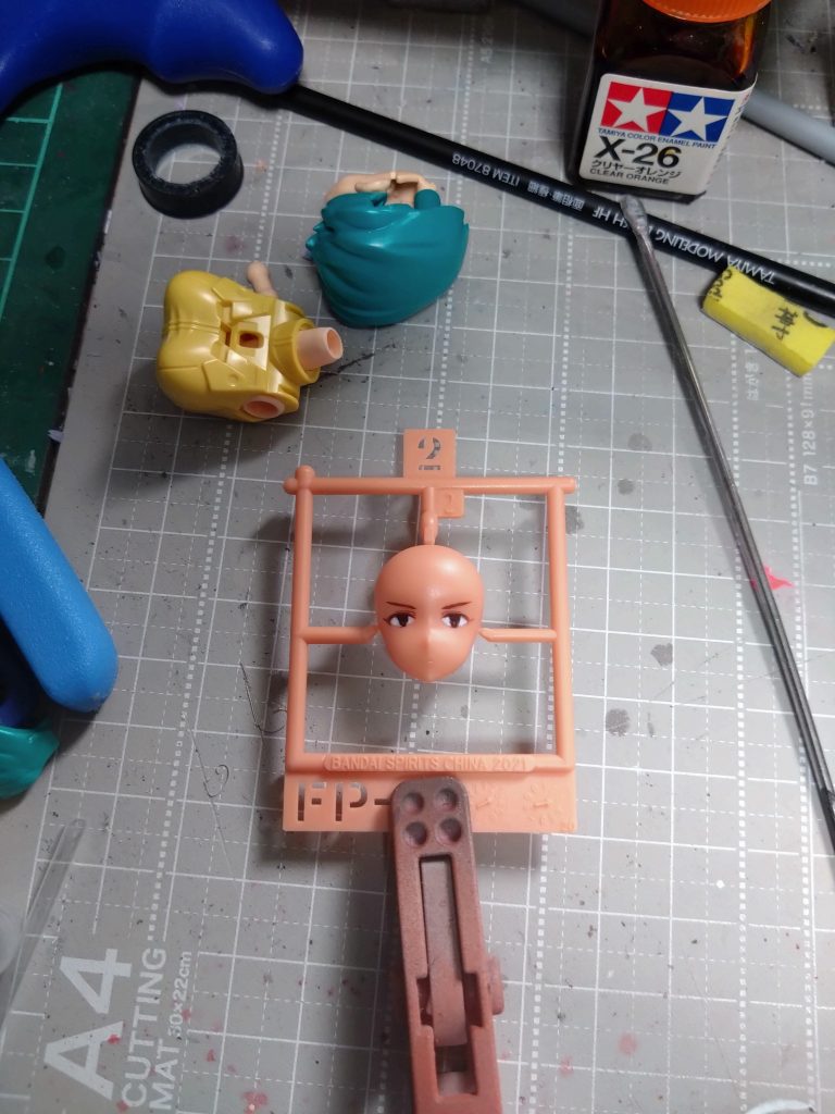 うーんイマイチだなぁ、と思いマイクロセラブレードを使用して少しずつ下部分を削って瞳の部分も少し小さく削ってみました。