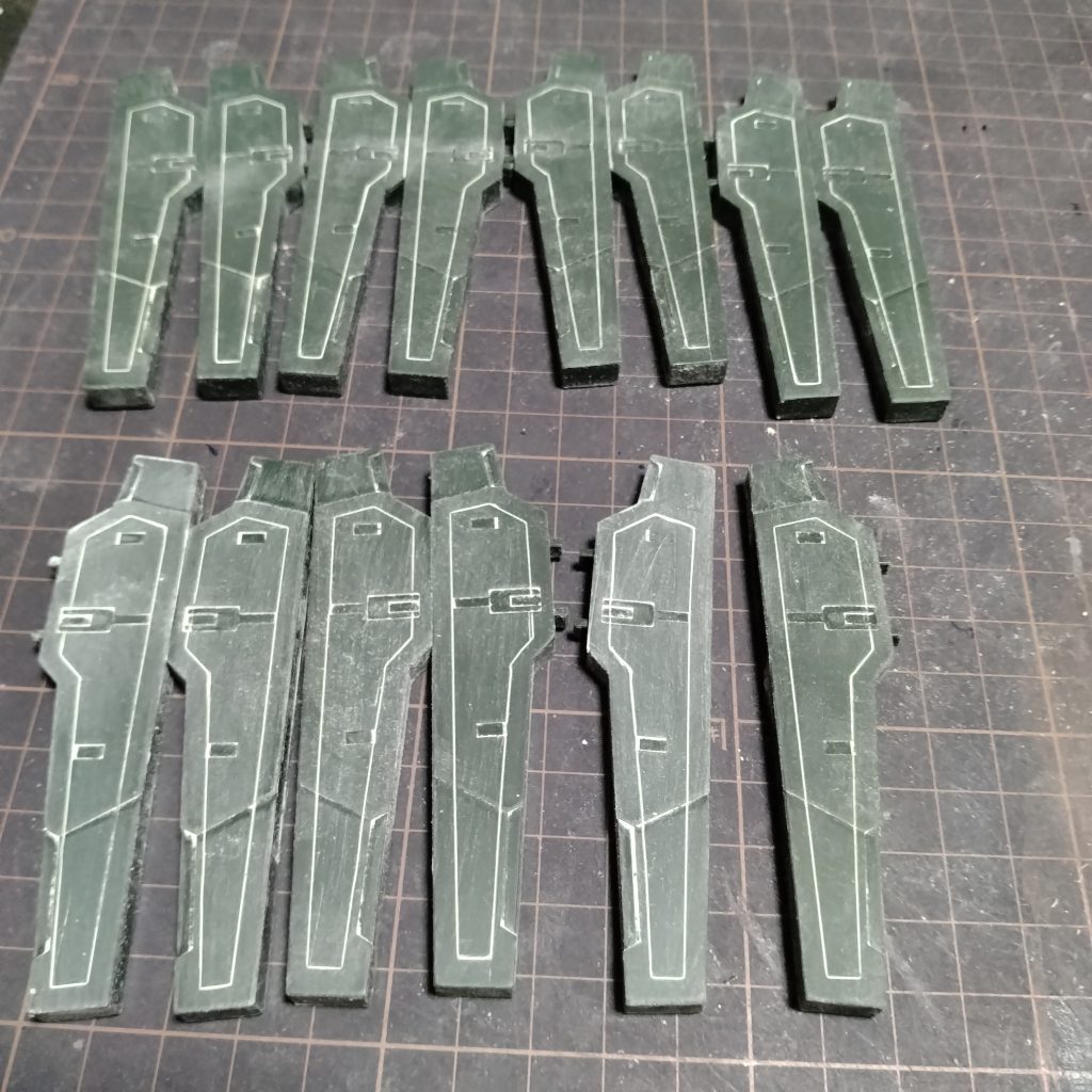 コメントに気づかず返すの遅くなってすみません😅そうなんです!フィン・ファンネルと似たような作業です😄スジ彫りもですが塗装に入ると同じ数マスキング作業もあるんです🥲取り敢えず終わらせましたが!ちょい凹みそうでした😄