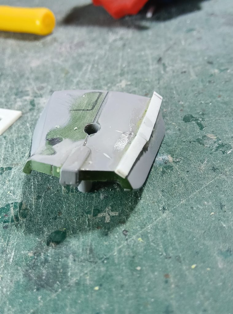リヤアーマーのダクト部も造形が変だったのでプラ材を使って成形しましてん