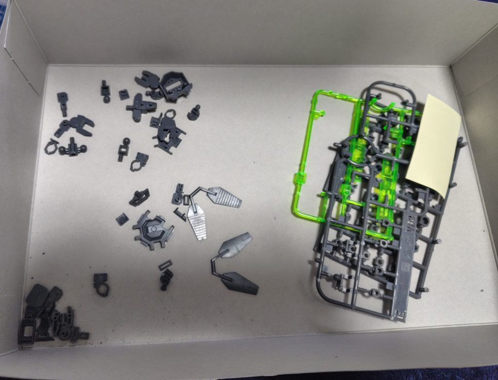 ニッパーと、グレーのパーツのゲート跡をヤスリがけしました。