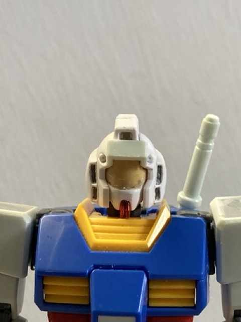 EGガンダムでなるべく簡単にジムっぽい頭を作ろう検討。昨日の続きです。トップ写真が一旦完成系です。制作過程ですが、まず2枚目の写真の赤枠内の三角尖りを削って削ぎ落とします。3枚目写真(股間部)の赤枠内の白い部分をカットしてトサカカメラ下に設置した凸のコの字パーツとして流用しています。ジム化に伴ってこの股間部パーツが不要になるので使い回しできて良かった。偶然にも幅がちょうどよかったです。そして4枚目のように接着すると、かなりジム感出てきたと思う(個人的に)。昨今色々なジム頭が出てきているので、これもジムということでご賛同いただける方が増えればEGガンダムの簡単ジム化案として普及できるかなぁ。私はもう少しガンダム感を消したいので、さらにいじってみます。
