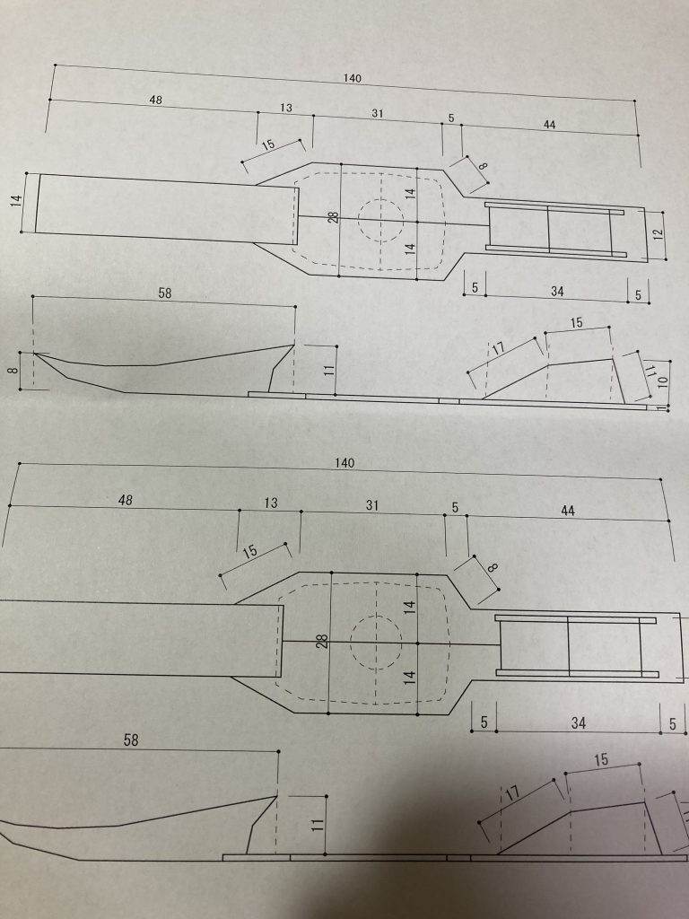 さすがFILOさんです。オプション装備のジェットスキーも制作されるのですね。それにしてもいつもこんなに緻密に計算されて制作されているのですね。製図すごい。私なんかいつも適当なので、左右の長さが違うなんてザラです(爆)楽しみにしております。