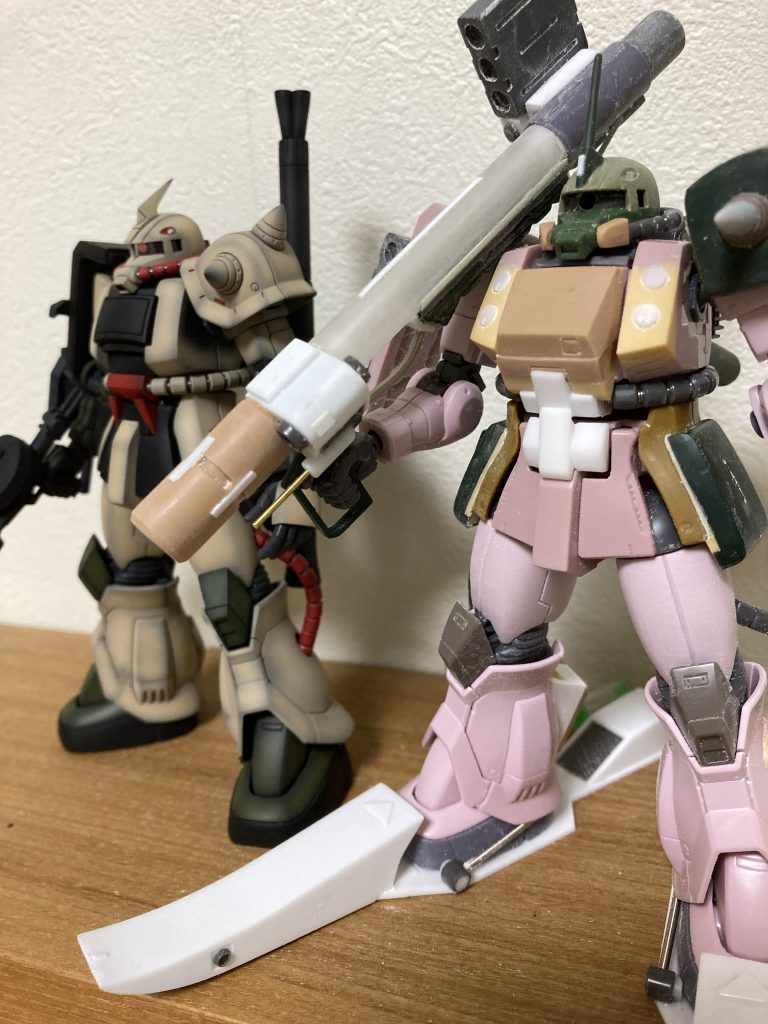 FILO 2025.06/06更新 ディザート・ザクFIN 24 16 いいねしたモデラー(16) 0 作品を共有 今日は早めに仕事が終わり、ディザート・ザクを進めました(週末の至福の時✨✨) やりたかった改修は全て終わり、後はバラしながら表面処理をしていきます。 塗装後にしか組み立てた姿が見れないので、記念撮影。 原形機のデザートザクとツーショット。 結構マッシブになってたのねー💦 制作中 ディザートザク コメント コメントをして応援しよう コメントにはログインが必要です FILO ご覧いただきありがとうございます。 オジン軍 量産型オサーン(S-49型)のFILOと申します。 あ、名前はFILOかFIROのどちらでも構いません。何のこだわりも無いので。 ZZシリーズの機体中心に作成していました。 ZZは作品としてはあまり人気が無いのですが、出てくる機体は魅力的なものばかり… おかげでキット化されなかったり、旧キットしか存在しなかったり… 最近のキットと並べても違和感が無い程度に改造、ミキシングして作成しました。 劇中のイメージ優先でシールは最低限にしてシンプルに仕上げるのが好きです。 透明なモノアイカバーと動力パイプの自作が大好きです。 フォローして下さる方はコチラもフォロー返します! ガンプラ好き同志、仲良くしましょう(^^) FILOさんがお薦めする作品 ガ・ゾウム ディザートザク ハンマ・ハンマ フルアーマーZZガンダム 17 ジム・カスタム改(ケーラ・スゥ専用機) 逆シャアシリーズからジム・カスタム改(ケーラ・スゥ専用機)で… 16 ガンタンク(宇宙戦仕様) イーグル&キウイ あけましておめでとうございます。 今年もよろしくお願いします… 17 ホビーハイザック せっかくの年末イベントなので、最新作です✨紅組ですが、全く赤… 17 シャア専用ザク 1stシリーズからシャア専用ザクⅡ…いや…あえて言(くどい…… FILOさんのページ この作品をお薦め作品に設定する Please login to update your profile! Please login to update your profile! Please login to update your profile! Please login to update your profile!