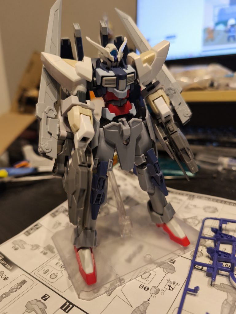 リバーシブルガンダムの腕に主武装をまとめた為、どうしても全体のバランスが悪くなってしまいましたそこで、ディナイアルが目に入り、徒手空拳を主体とする機体なだけあって胴体と脚が長くプロポーションがよく見えました。