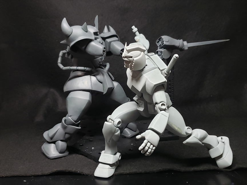 月末までには、アニメ劇中版の旧キットガンダムとグフを仕上げるつもりです。
