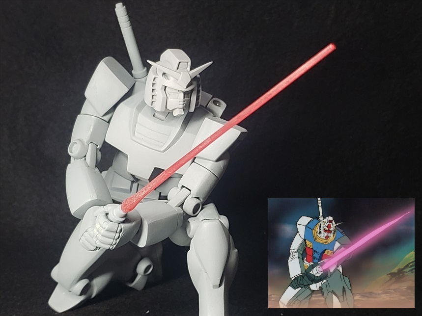神業とはあまりあるお言葉です。。。ファーストガンダムのアニメ劇中の再現。膨大な時間を費やして工作を積み重ね、安彦氏の描いたカットと比較し、また調整を積み重ね、何とかここまでアニメに迫ることができました。