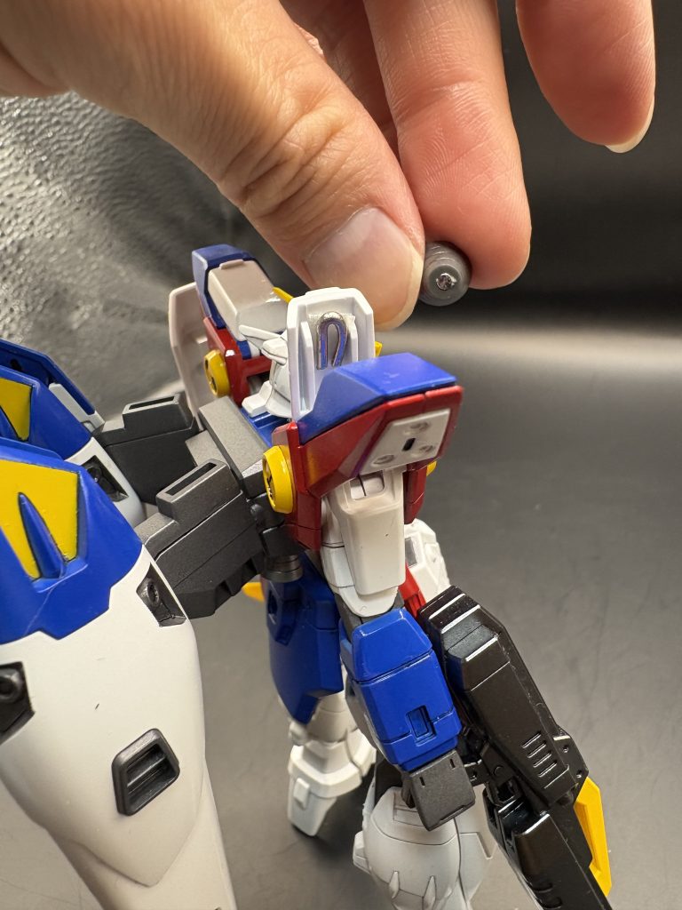 でも市販のバーニアを貼るだけだから余裕🎵とたかを括っていたら…肩のバーニアが可動式で、変形時に折りたたむ必要があり、やばい💦