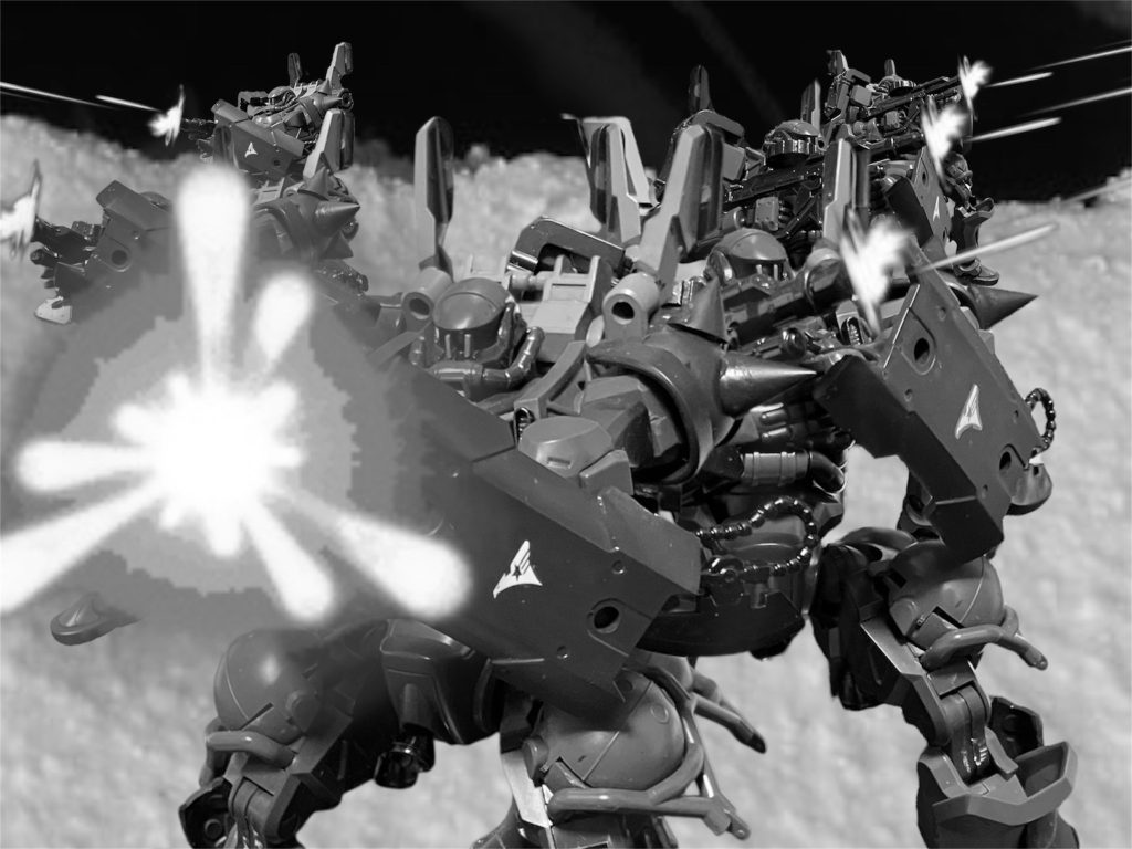 銃弾とビームが飛び交う。だが圧倒的数の暴力の前に距離を詰められる。
